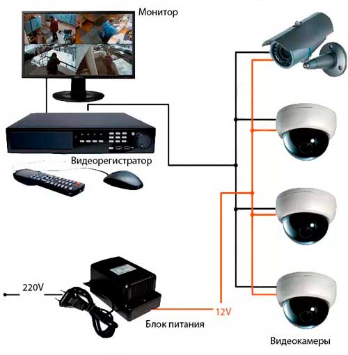 Упрощенно схему видеонаблюдения можно